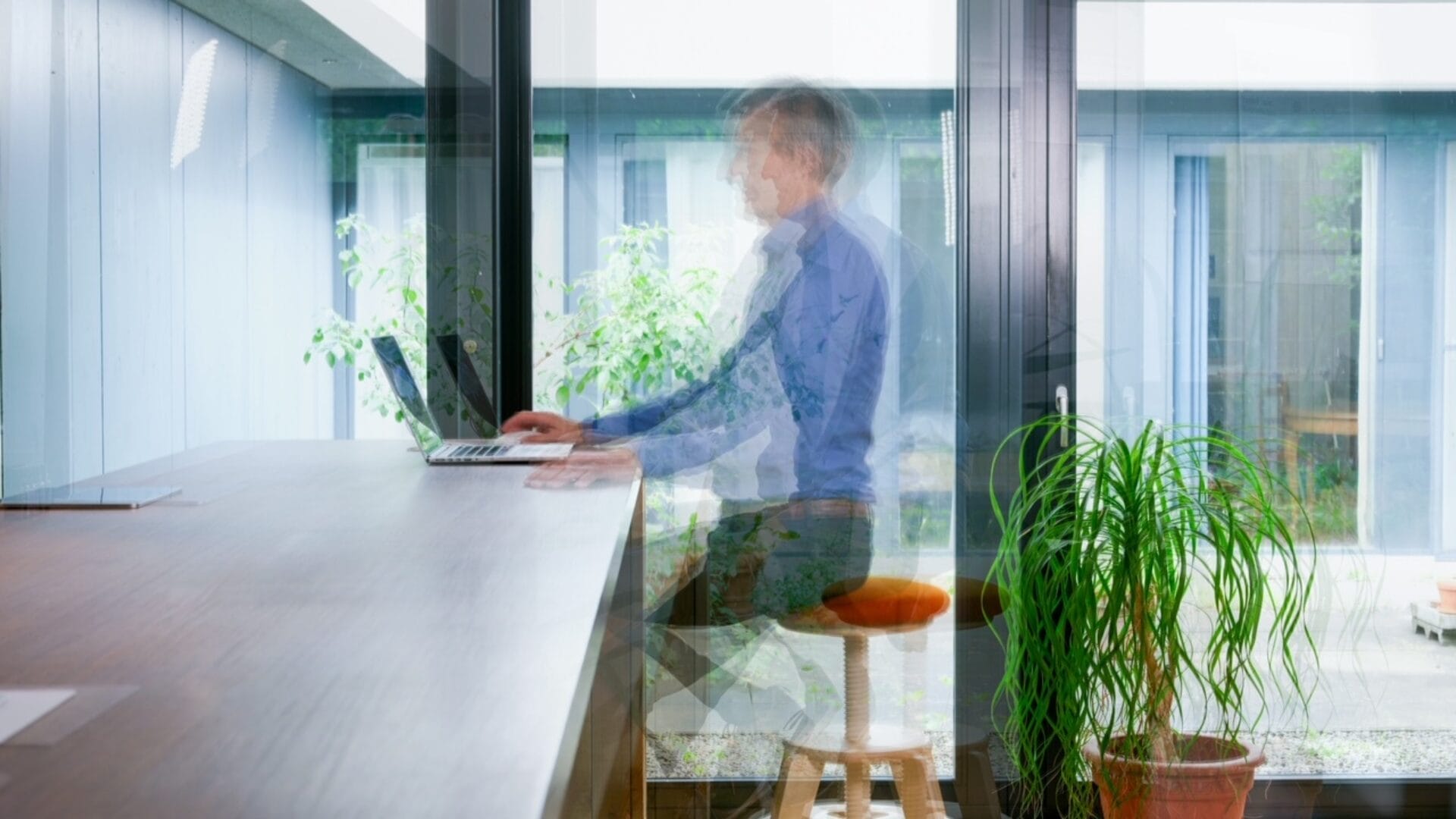 Das Arbeiten am Bürotisch mit dem richtigen Hocker fördert ein Gefühl ständiger Energie und Vitalität.